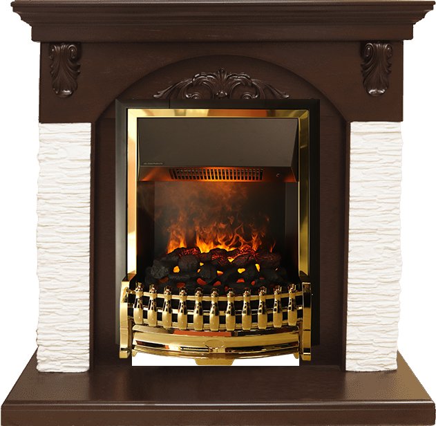 Каминокомплект Dimplex Bern выполнен в классическом стиле. Он изготовлен из дерева и искусственного камня и представлен в нескольких цветовых решениях. Фронтальная часть портала украшена резным орнаментом, который придает нотки античности. Колонны выполнены из камня, столешница и постамент – из дерева. Зона очага визуально выделена деревянным обрамлением контрастного цвета.
