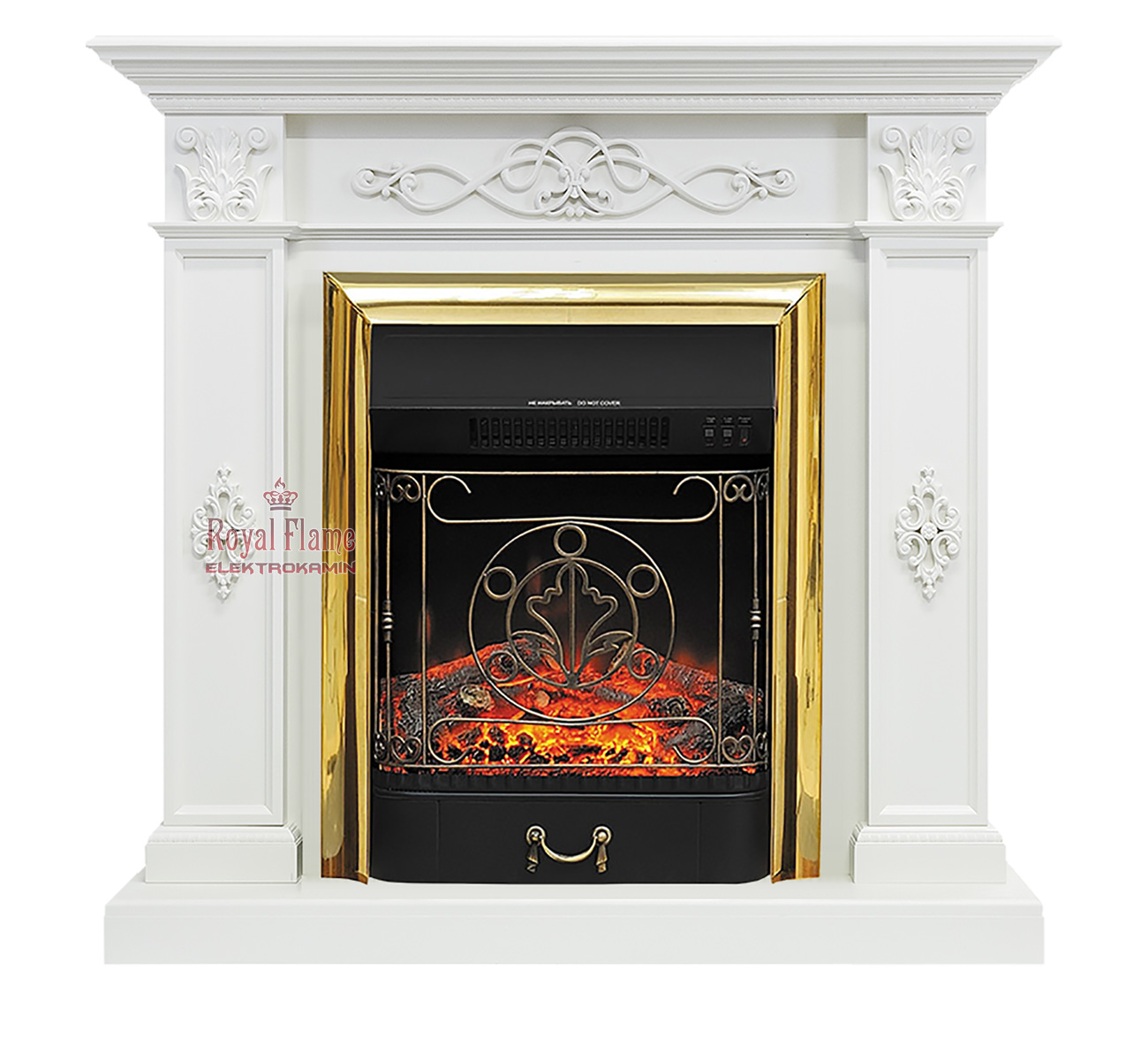Электрический каминокомплект Royal Flame Derby очаг Majestic FX Brass. Derby – изысканный, стильный портал для помещений в классическом интерьере. Представлен в нескольких цветовых решениях. Боковые части портала выполнены в виде колонн, которые поддерживают ступенчатую крышку. По центру фронтона расположен изящный резной узор. Кронштейны украшены декоративной лепниной.
