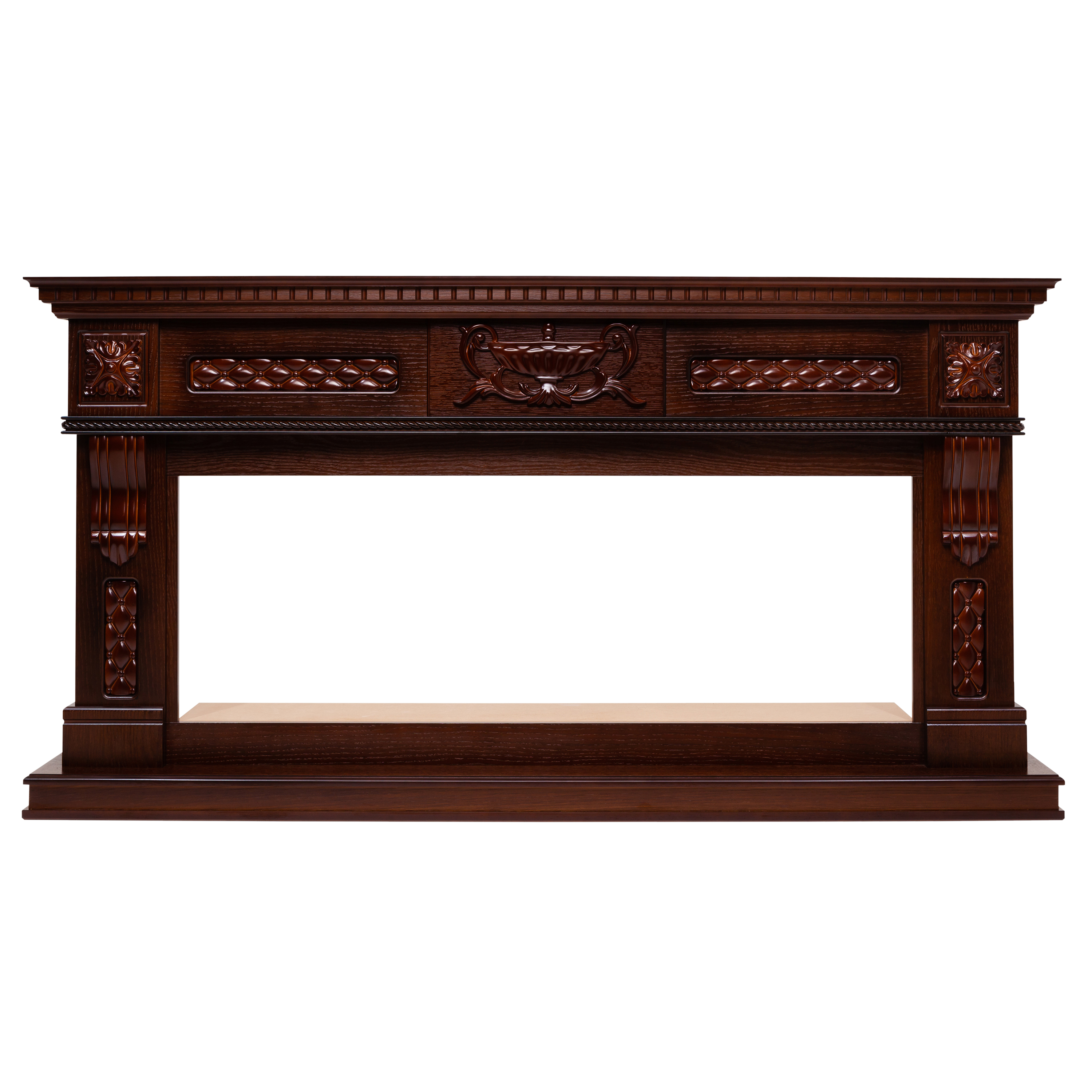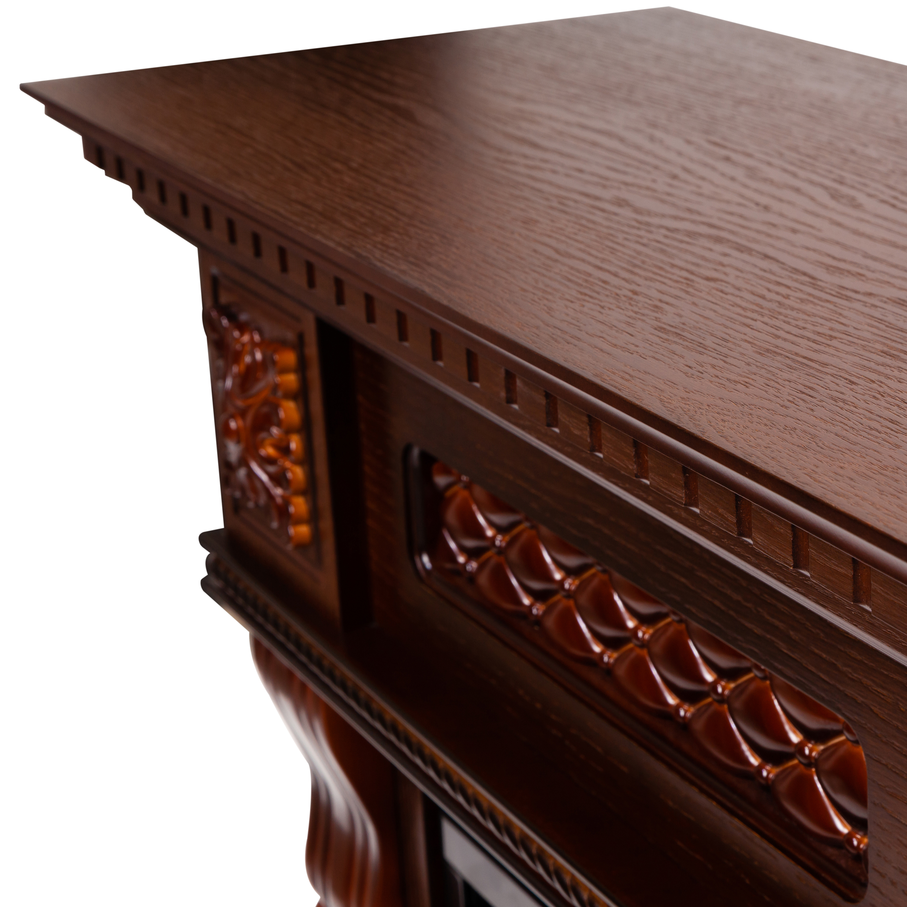Данный портал от российского производителя RealFlame изготавливается только из качественных материалов таких, как МДФ и шпон. А классические цвета портала прекрасно подчеркивают яркое пламя камина.