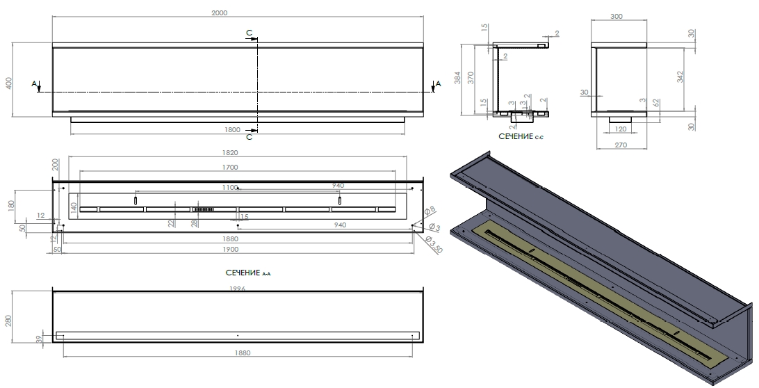 • Проект №179 Торцевой биокамин длинной 2 метра Реализованные проекты1