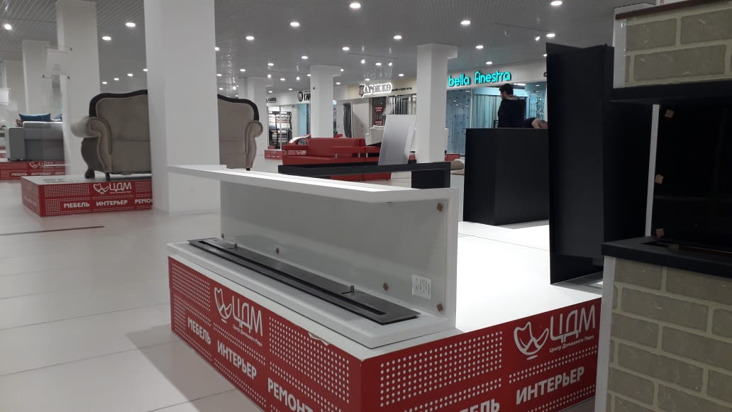 Изготовили Белый встраиваемый биокамин Firezo Estrimita с открытыми торцами и белым стемалитом. Камин уехал в Сочи .